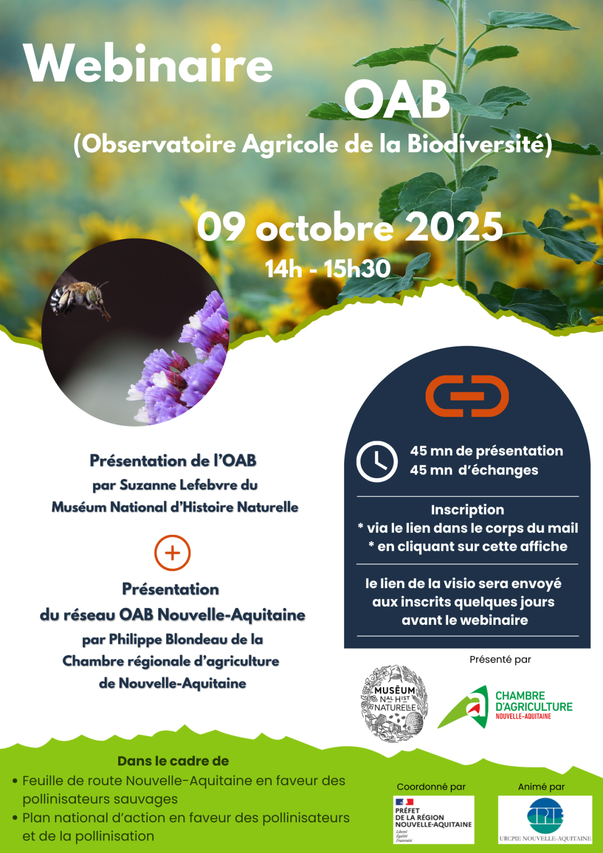 Prochain rendez vous le 9 octobre 2025 pour une présentation du dispositif "Observatoire Agricole de la Biodiversité "